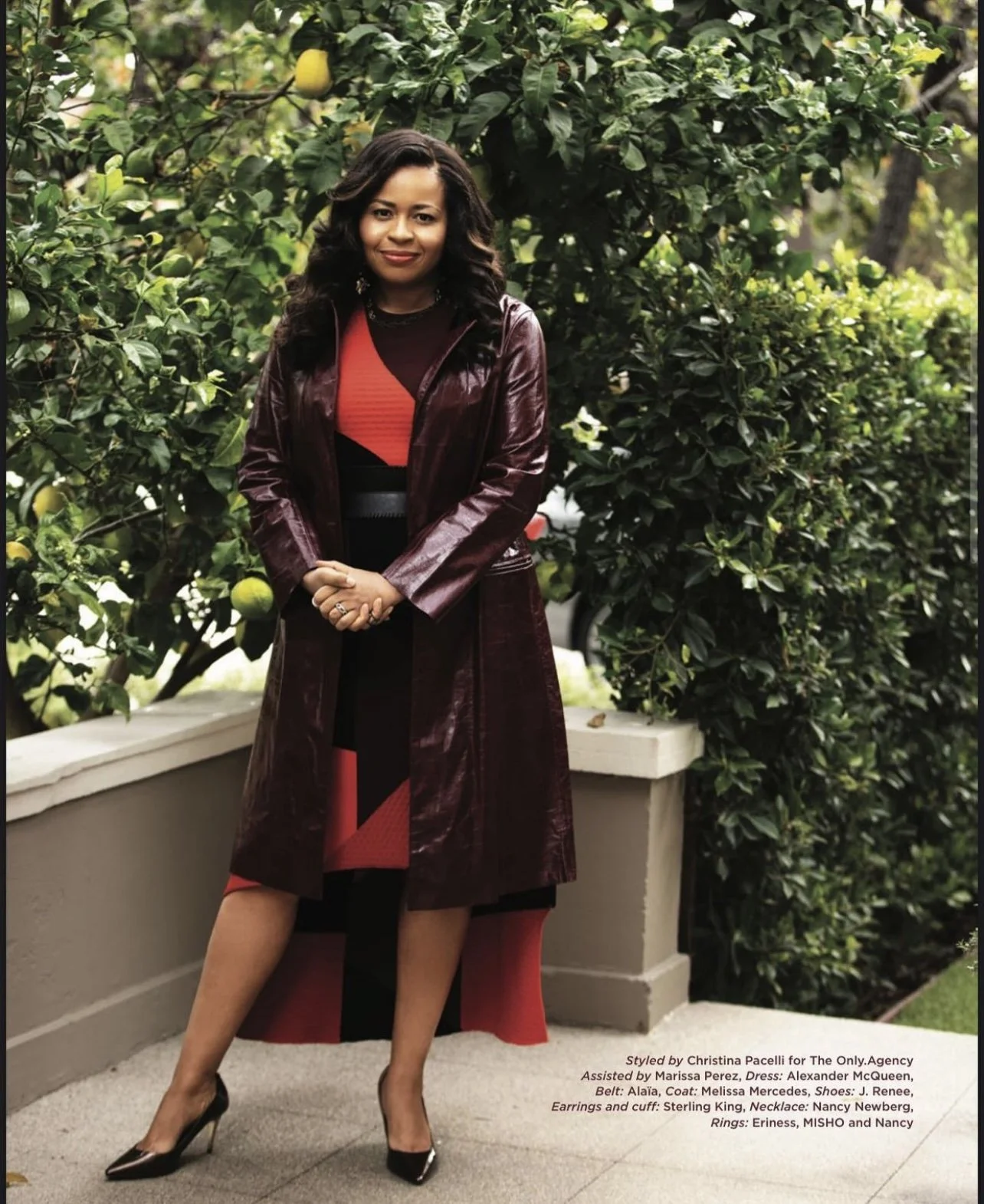 Courtney Kemp wearing our Celia dress from our 2019 Roots Collection for Vibe Magazine