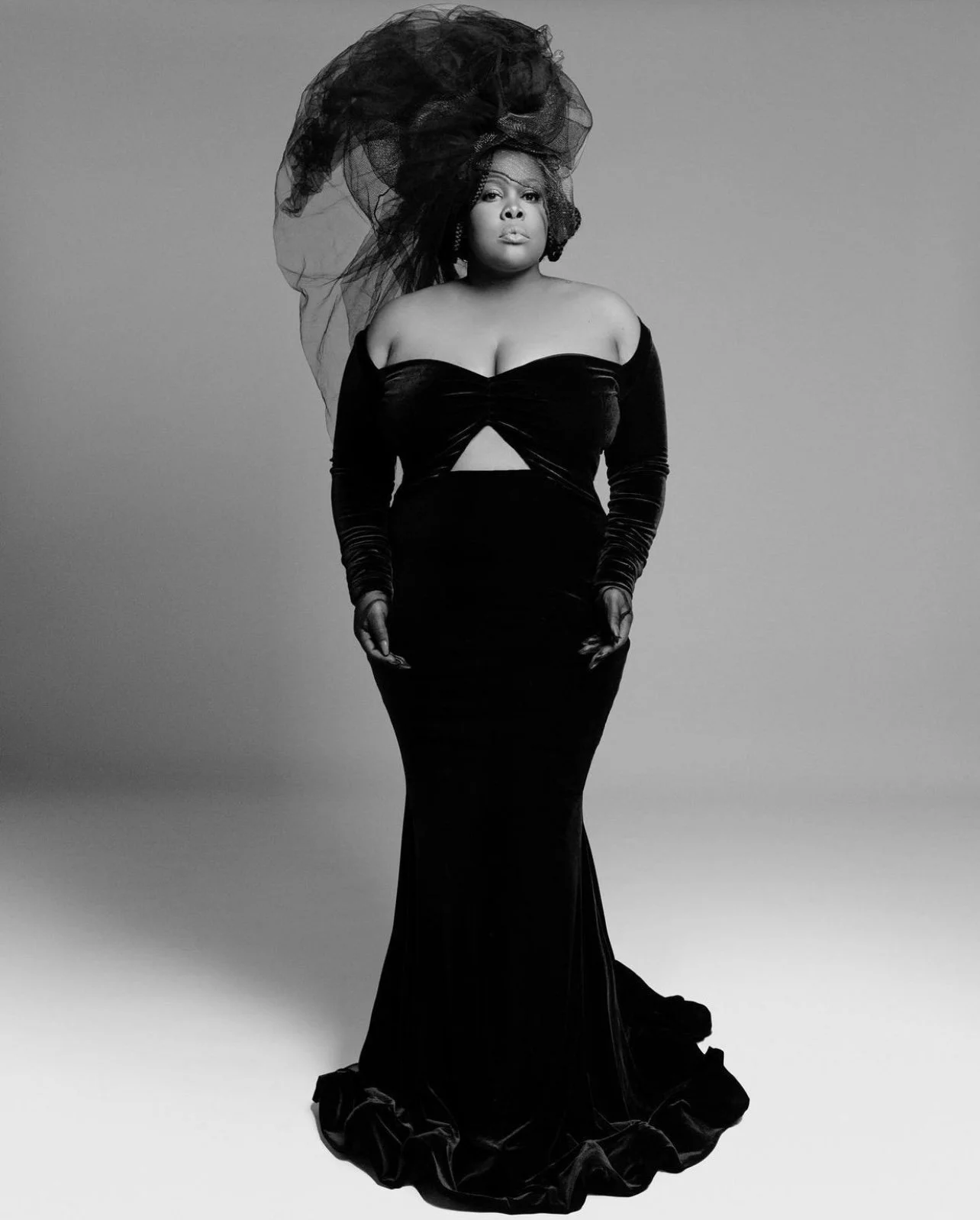 Amber Riley wearing Melissa Mercedes "Raven" Gown from our "Redemption" collection.